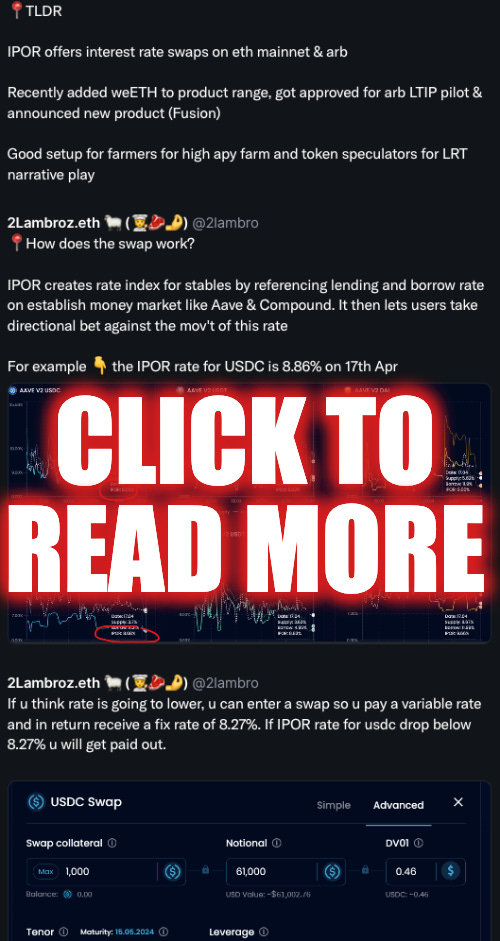 DeFiHow to front-run IPOR $arb incentive, LRT pools and incentivesLRT pts + Eigen pts + trading fees + protocol incentives + ARB LTIP2lambroz.ethApr 19, 2024Share@ipor_io LTIP approval = best LRT yield coming?Patiently waiting for @ipor_io to launch LRT pool on arbitrum so I can farm LRT pts + Eigen pts + trading fees + protocol incentives + ARB LTIP🧵
